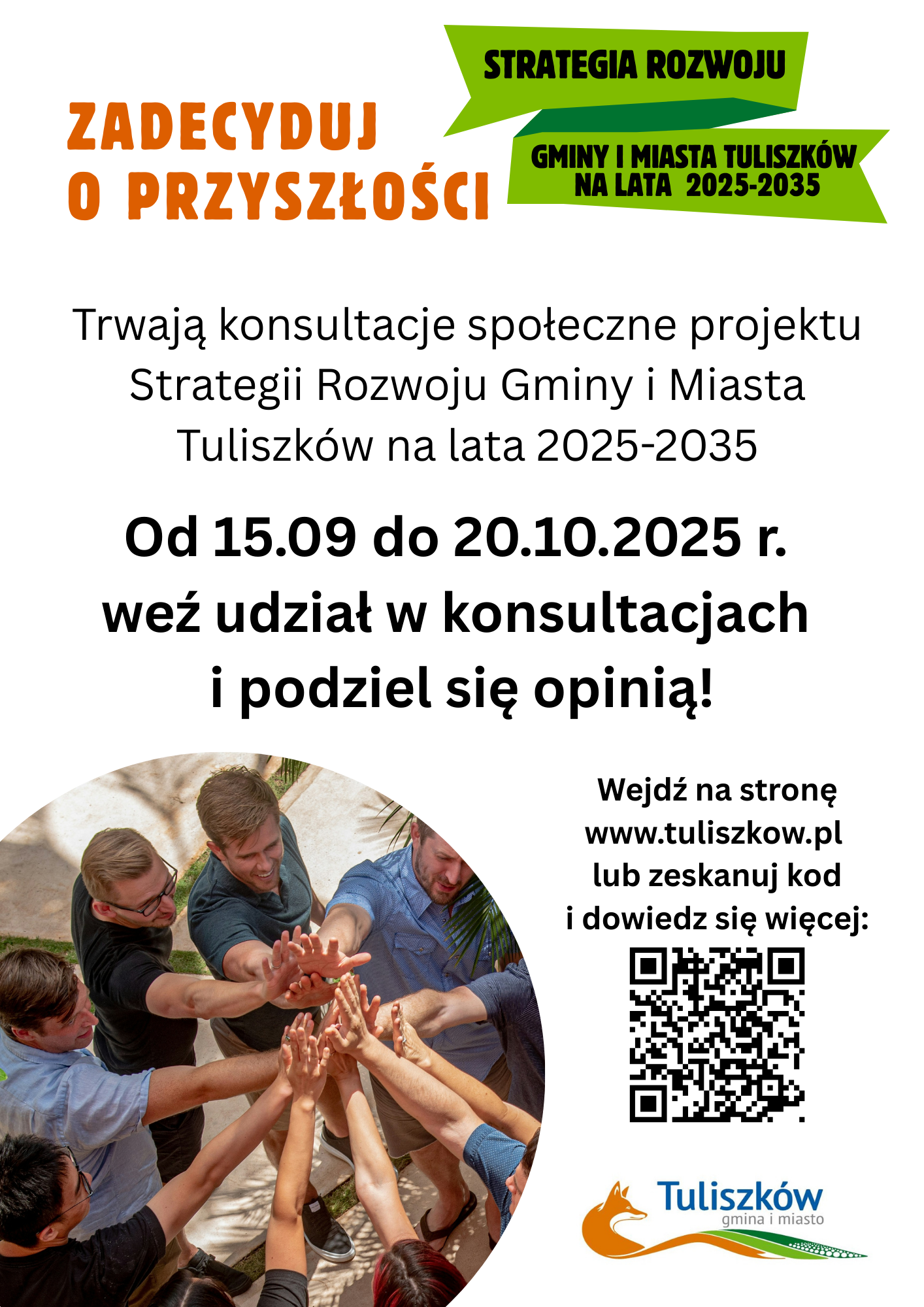 Na podstawie Zarządzenia nr 0050.93.2025 Burmistrza Gminy i Miasta Tuliszków z dnia 8 września 2025 r. informuję o rozpoczęciu konsultacji społecznych projektu Strategii Rozwoju Gminy i Miasta Tuliszków na lata 2025-2035.